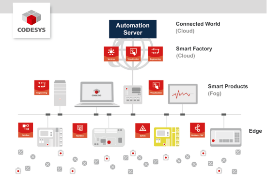 CODESYS Automation Server,是基于 CODESYS自動化編程軟件的智能工廠/數(shù)字化車間軟件解決方案的開發(fā)工具套件,它可以實現(xiàn)從設備端(設備到設備)到工業(yè)云端的互聯(lián)互通智能化整體解決方案。簡單地講, CODESYS Automation Server 與市場上很多所謂的“工業(yè)云”有較大區(qū)別,CODESYS Automation Server 不僅管控智能工廠/數(shù)字化車間的上位管理層實時數(shù)據(jù),而且更善于對設備中的控制器及運行在其中的應用程序進行在線調(diào)試、實時診斷、遠程下載和實時備份/還原等智能化操作,從而實現(xiàn)了只需使用一個功能強大的自動化編程軟件 – CODESYS IDE,就能夠輕松地通過CODESYS Automation Server 完成對制造工藝的編程控制、生產(chǎn)調(diào)度、設備維護、運營管理等多種復雜任務。在設備端, CODESYS軟件提供了運行在設備控制器中的工業(yè)實時級運行時系統(tǒng)Runtime、復雜運動控制編程組件(CNC+Robotics)、人機交互可視化編程組件以及多種工業(yè)實時總線的協(xié)議棧;在云端,通過CODESYS Automation Server可以獲取來自運行在每個設備控制器中的 Runtime 所提供的底層數(shù)據(jù)、狀態(tài)信息等,從而真正實現(xiàn)基于云服務對智能工廠/數(shù)字化車間的實時運維和管控。