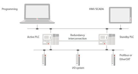 CODESYS Redundancy 允許將兩臺CODESYS控制器連接到同一系統(tǒng)中,兩臺控制器運行同樣的應用程序,如果其中的一臺控制器宕機,另一臺控制器將在不打斷控制過程的情況下接管控制任務。