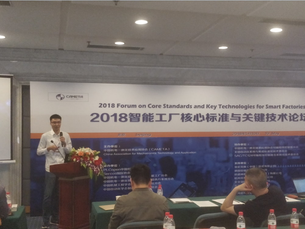 5月10日,展會同期,PLCOpen還召開業(yè)界高端會議——2018智能制造國際會議。工業(yè)物聯(lián)網(wǎng)已成為智能制造的熱點,眾多廠商都推出自己的獨特方案。CODESYS應(yīng)用研發(fā)中心經(jīng)理張桐也為大家?guī)?/span>“基于PLCopen 的智能工廠核心技術(shù)CODESYS IIOT”主題演講,與大家分享CODESYS的云平臺和數(shù)字化工廠方案。